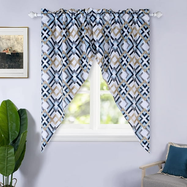 Driftaway Diamond Room Darkening Window Treatment For Bay Window Scalloped Swag Curtains Valance Geometric Trellis Plaid Pattern For Kitchen Tier Curtain Living Room Rod Pocket 2 Panels W33xl60 Navy Walmart Com
