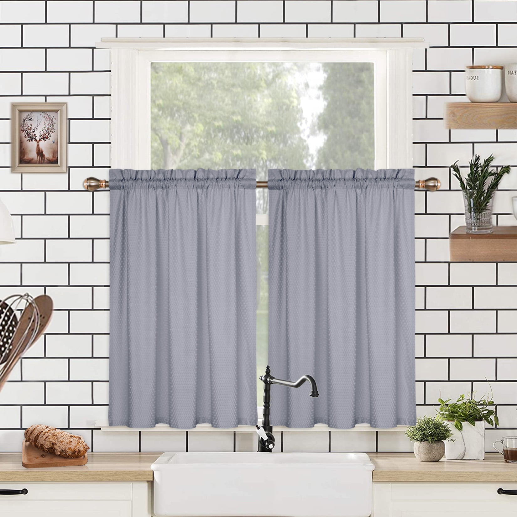 Homerry 30 W X 36 L Blackout Kitchen Curtains Farmhouse Bubble Textured Waterproof Bathroom Curtains Gray 2 Panels Walmart Com